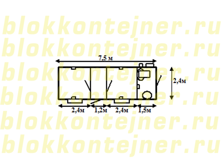 Блок - контейнер  БК 7,5*2,4*2,5 -1шт. ОФИС+санузел